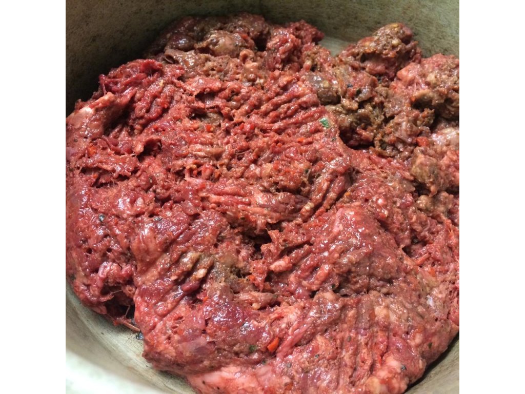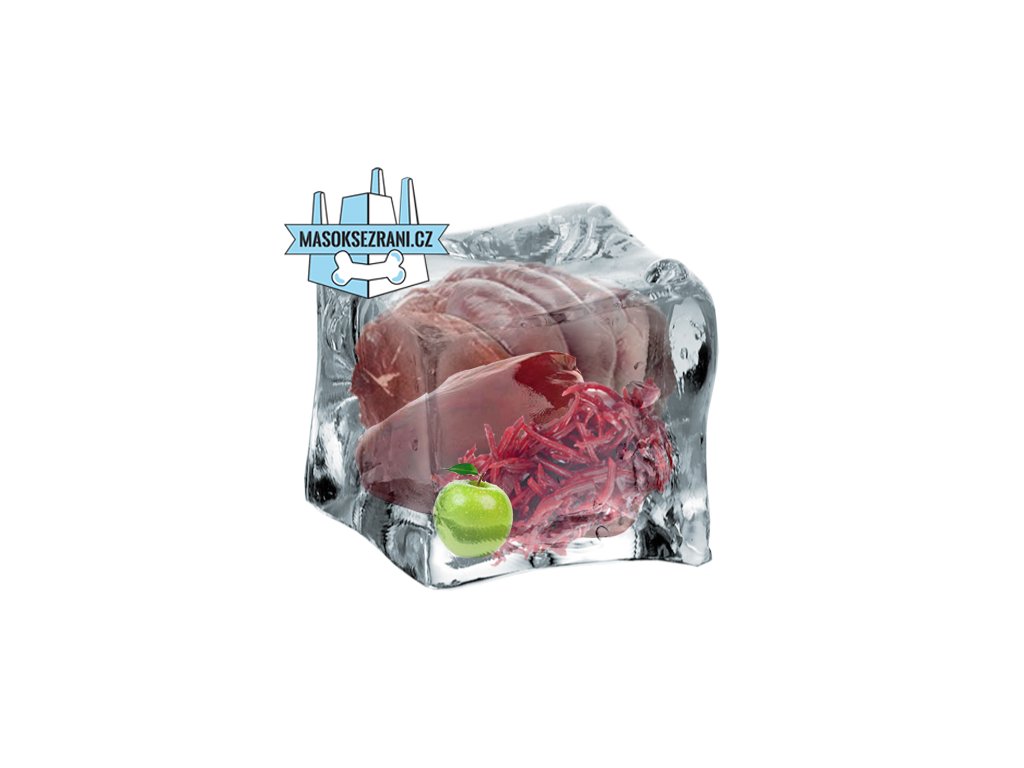 BARF - ZVĚŘINO-VEPŘOVÝ KOMPLET je mleté syrové maso určené ke krmení psů a jiných domácích šelem. Maso je mleté a zabalené v plochém PE/PP obalu. Výhodou tohoto balení je dobrá skladovatelnost, protože zabírá v mrazáku málo místa a zároveň je možné celkem snadno ulomit a rozmrazit jen část balíčku. Veškeré použité suroviny odpovídají potravinářské kvalitě.