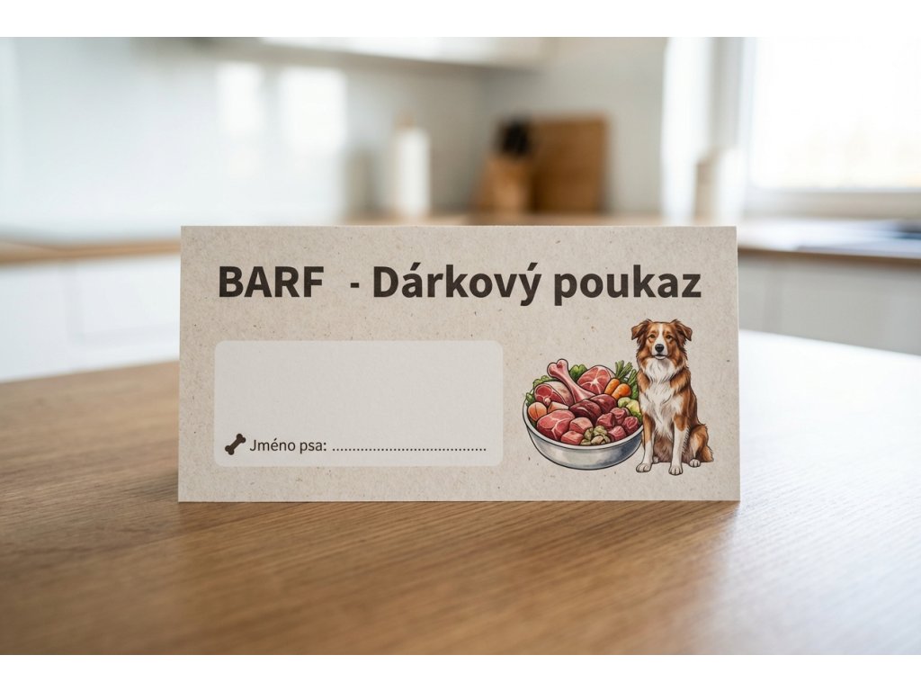 BARF dárkový poukaz potěší nejen obdarovaného, ale především jeho čtyřnohého parťáka.