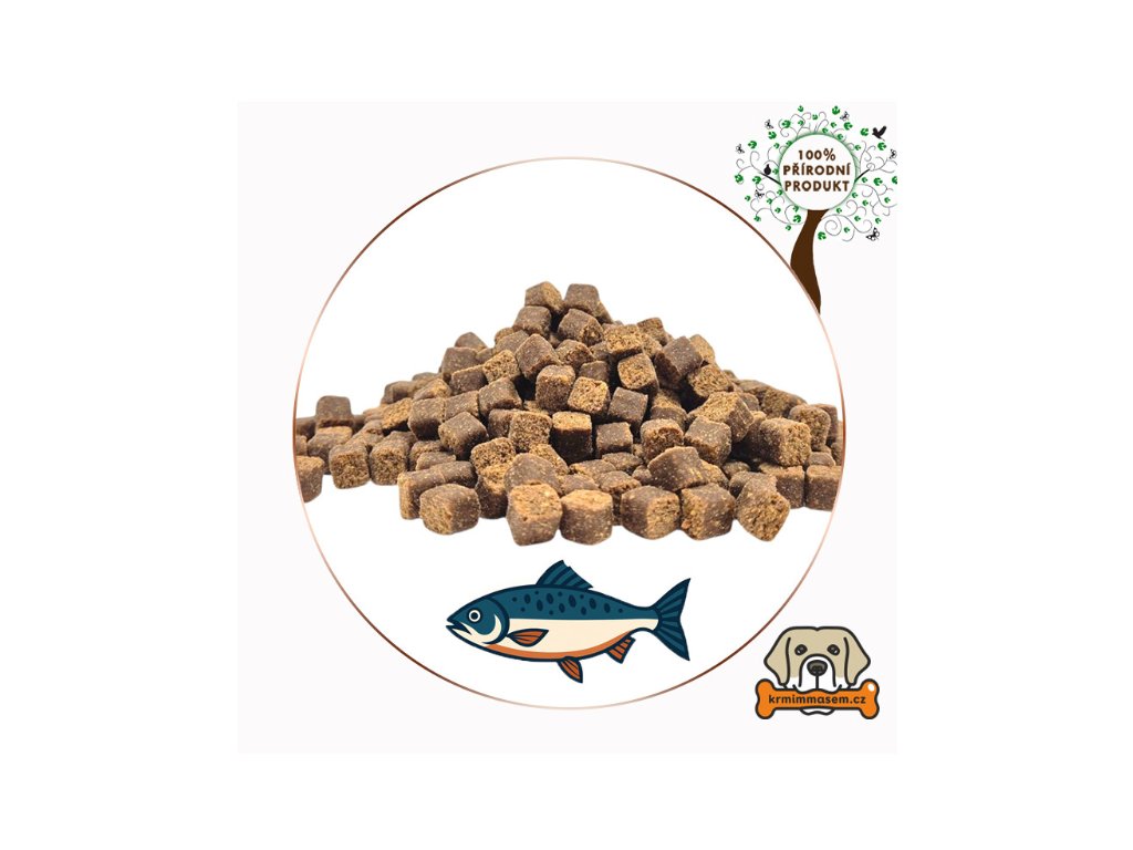 Polovlhká textura (cca 20 % vlhkosti) – šťavnaté, měkké kousky, které pes snadno přijme.