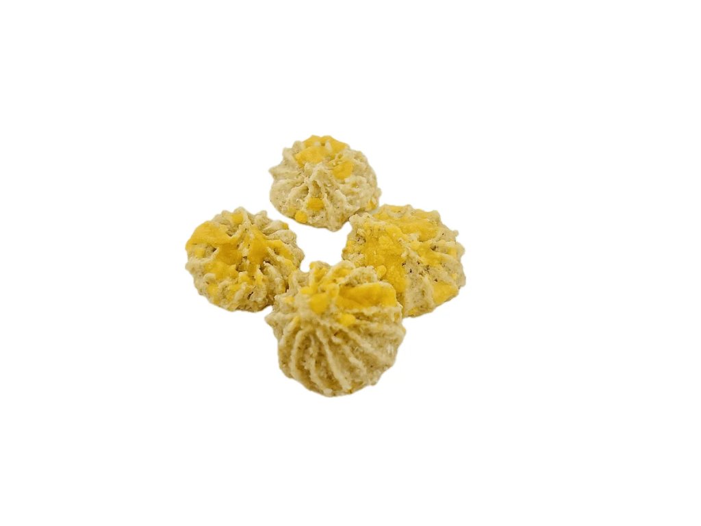 Čerstvý sýr, čedar. Kokos příznivě působí na naše zažívání a upravuje činnost střev, navíc obsahuje vápník a hořčík, který příznivě ovlivňuje celý pohybový aparát. Ovesné vločky mají vysoký obsah bílkovin a nenasycených mastných kyselin, obsahují vitamíny B1, B6 a E, minerály a stopové prvky (jako je fosfor a vápník), jsou výborným zdrojem vlákniny a napomáhají nám pejskům k dobrému trávení.