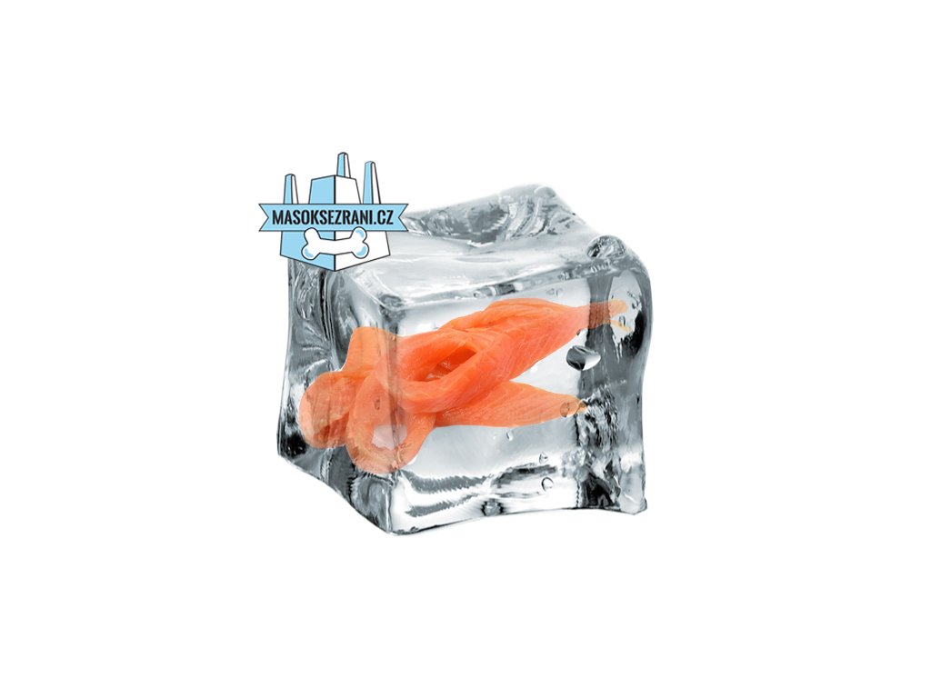 NORSKÝ LOSOS BŘÍŠKA je kusové syrové maso určené ke krmení psů a jiných domácích šelem. Maso je mleté a zabalené v plochém PE/PP obalu. Výhodou tohoto balení je dobrá skladovatelnost, protože zabírá v mrazáku málo místa a zároveň je možné celkem snadno ulomit a rozmrazit jen část balíčku. Veškeré použité suroviny odpovídají potravinářské kvalitě.