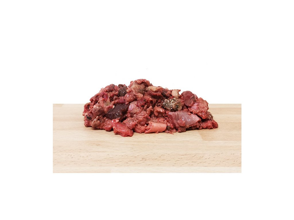 Krmné doporučení: Obsahem svaloviny a recepturou - celé zvíře - je toto maso vhodné pro dlouhodobé krmení běžně aktivních zvířat. Při krmení tímto masem přidáváme už jen rostlinné složky (zelenina, ovoce, neprané dršťky).